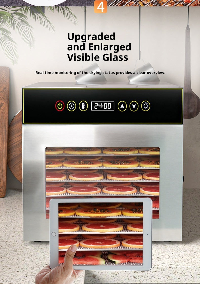 Transform your kitchen into a food preservation hub with this premium stainless steel dehydrator. Engineered for consistent results, its robust construction ensures even heat distribution across multiple trays, perfectly drying everything from stone fruits and citrus to herbs and protein snacks. The intuitive temperature and timer controls adapt to your ingredients' specific needs, while whisper-quiet operation keeps your space peaceful. Crafted from food-grade stainless steel, it resists corrosion and cleans effortlessly—ideal for households committed to eliminating additives and maximizing nutritional retention. Compact yet capacious, this dehydrator streamlines batch processing while minimizing your kitchen footprint, making it the intelligent choice for serious home food preservation.